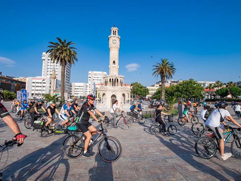 Bisikletçiler Konak Meydanı’ndan başlayarak Mustafa Kemal Sahil Bulvarı üzerinden İnciraltı Kent Ormanı’na kadar yaklaşık 7,5 kilometre pedal çevirdi.