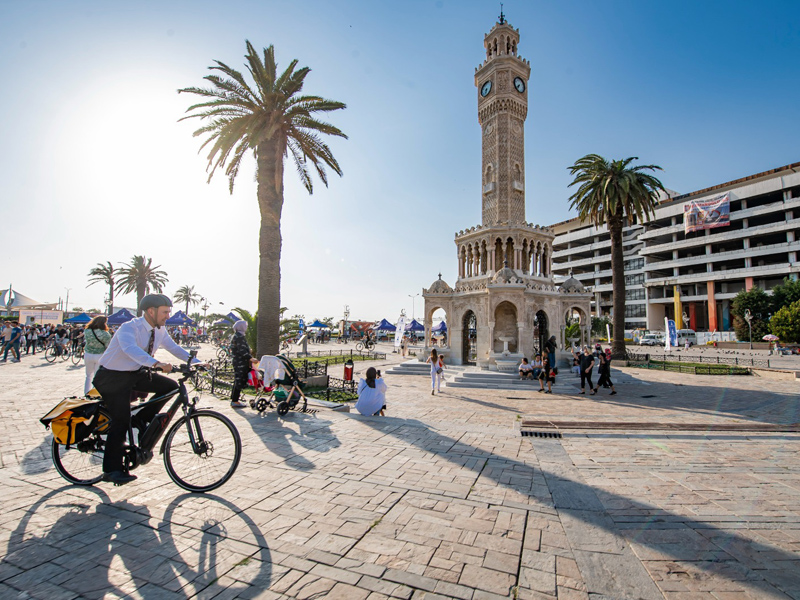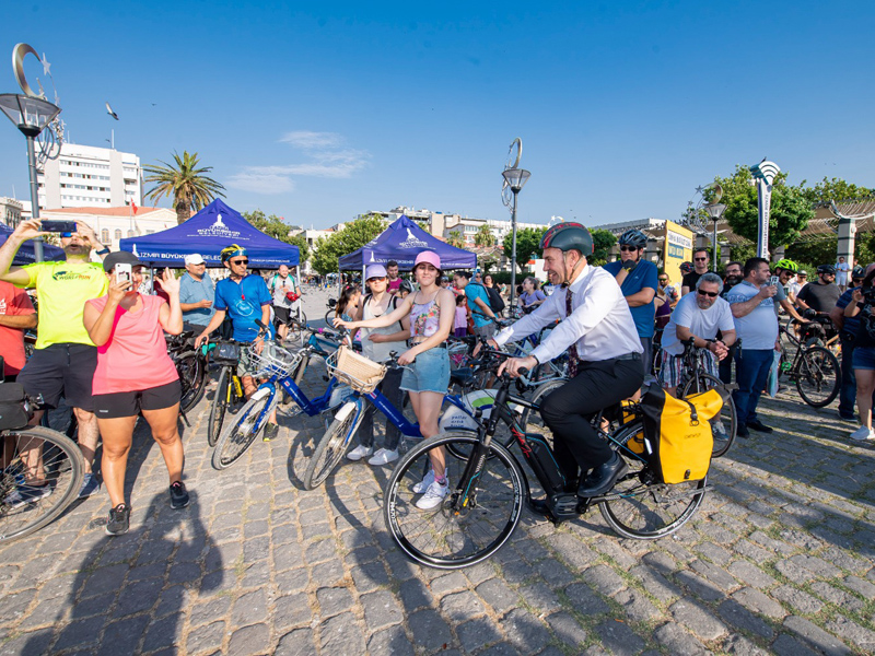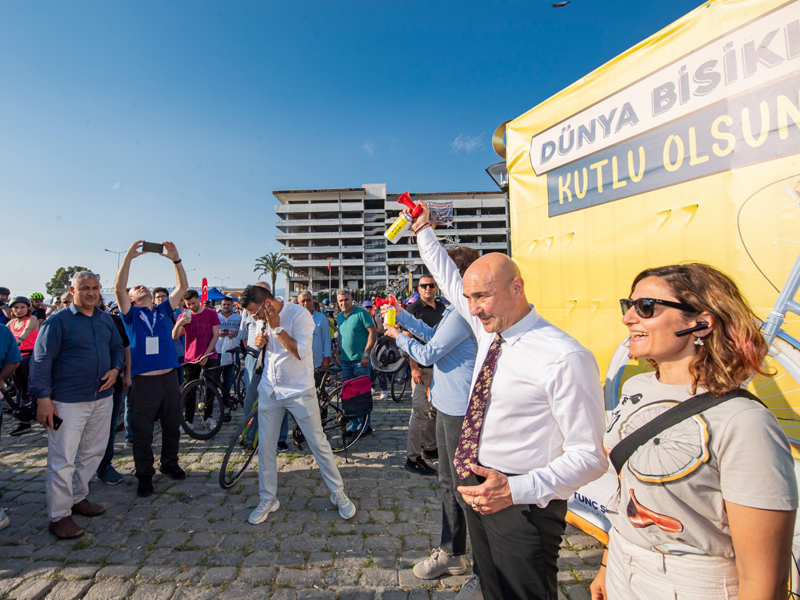 İzmir’de bisiklet kullanımının yaygınlaşması için yapılan çalışmaları anlatan İzmir Büyükşehir Belediye Başkanı Tunç Soyer, şunları söyledi: “Metro asansörlerini bisikletli kullanıcıların kullanımına açtık. Bisikletli yolcuların, otobüsle taşınabilmesi için ESHOT otobüslerimize özel aparatlar ekledik. Sadece son bir yılda bin bisiklet park yeri ve 10 elektronik bisiklet park kabini konumlandırdık. Bisikletli ulaşım konusundaki çalışmalarımız, İzmir kent merkezi ile sınırlı kalmadı. 30 ilçemizdeki dijital ekran ve billboardlarda taşıt sürücülerine yönelik bisiklet ile ilgili farkındalık mesajlarına yer veriyoruz.”