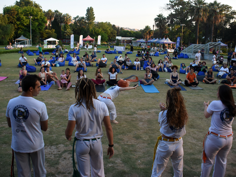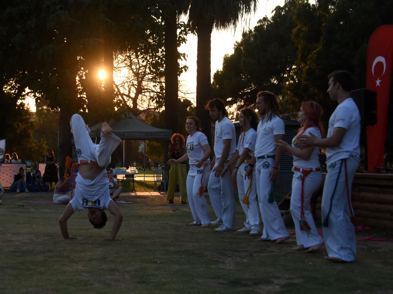 Festivalin ilk gününde Gülin Zeytinlu ile Kendinden Kendine Sefer Eyle pratiği yapan İzmirliler, daha sonra Elif Türkyolu ile yoga pratiği gerçekleştirdi. Kulübümüz capoeria eğitmeni Uğurcan Yelekli'nin gösterisinin ardından Serhat Acarlı ile Handpon-Trompet dinletisi ile meditarif müzik dinletisi ve meditasyon aktiviteleri yapıldı.