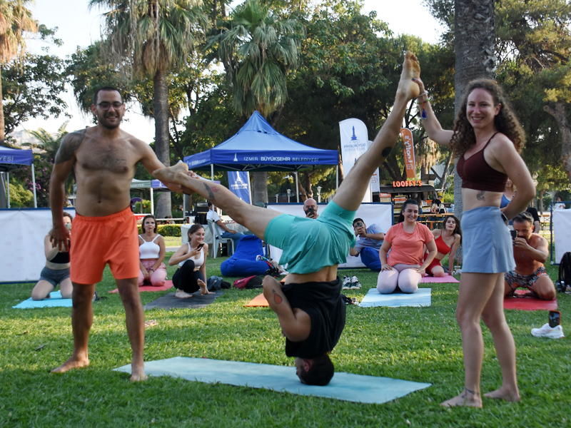 İZMİR Büyükşehir Belediye Başkanı Tunç Soyer’in İzmir’de sporu yaygınlaştırma ve spor kültürünü geliştirme vizyonu doğrultusunda düzenlenen yoga festivali başladı. Kültürpark Ahşap Sahne’de bugün başlayan İzmir Yoga Festivali'ne İzmirliler yoğun ilgi gösterdi.