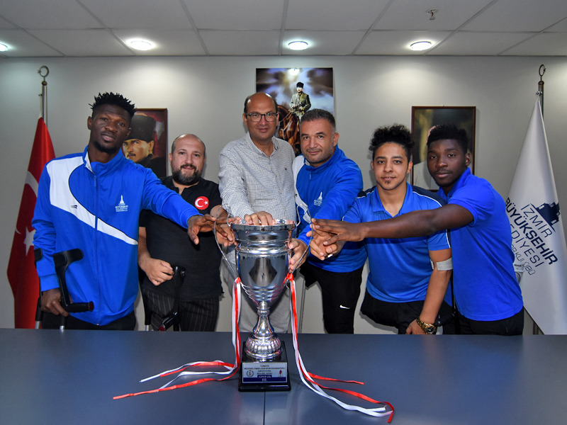 Celal Atik Spor Salonu'nda sporcularımızla bir araya gelen Odaman, tüm takımı ve emeği geçenleri tebrik ederek, "Geçtiğimiz sezon gibi yine kupayı müzemizde görmek mutluluk verici. Ampute Futbol Takımımıza desteğimiz artarak devam edecek. Bu başarıda payı olan herkesi kutluyorum" diye konuştu.