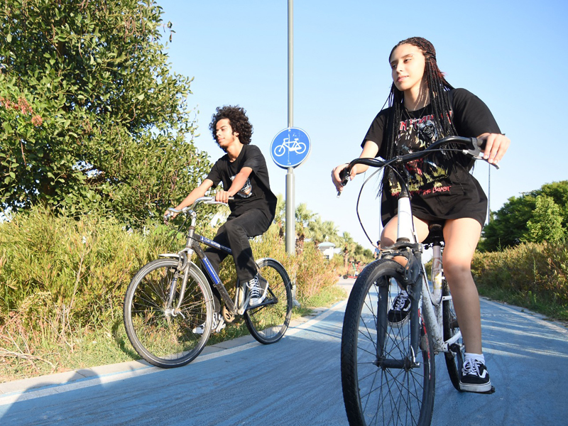 İZMİR Büyükşehir Belediyesi çevre dostu ulaşım ve gezinti aracı bisikletin kent genelinde kullanımını yaygınlaştırmak amacıyla Bostanlı Rekreasyon Alanı’nda özel bir kiralama alanı oluşturdu. “Bisiklet bizden, gezmesi sizden” adı verilen uygulama kapsamında her gün 08.30 ile 23.30 saatleri arasında dileyenler bisikletleri ücretsiz olarak kiralayıp Doğal Yaşam Parkı’na kadar uzanan parkurda keyifli saatler geçiriyor. 15 yaş ve üzerindeki kullanıcıların sadece kimlik karşılığında ve beş saatliğine kiraladıkları bisikletler, spor, eğlence ve keyifli bir dünyanın kapılarını açıyor. Uygulamaya en büyük ilgiyi aileler ve gençler gösterirken, Bostanlı Yasemin Kafe önünden Doğal Yaşam Parkuru’na kadar uzanan parkura manzaranın eşsiz güzelliği eşlik ediyor.