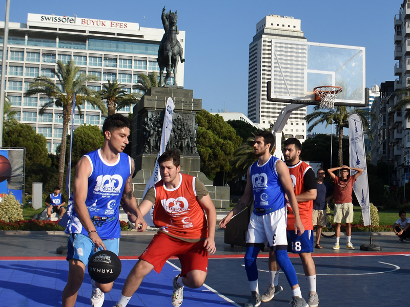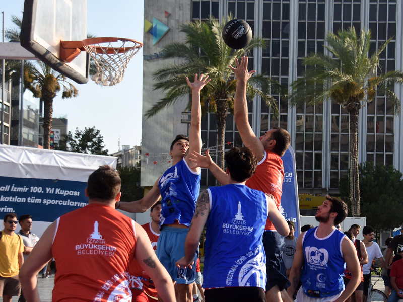 İZMİR'in kurtuluşunun 100’üncü yılı onuruna İzmir Büyükşehir Belediyesi tarafından düzenlenen 3x3 Streetball İzmir 100.Yıl Kupası'nın finalleri çekişmeli maçlara sahne oldu. Cumhuriyet Meydanı'nda yapılan finallere İzmirli sporseverler büyük ilgi gösterdi. Üç sayı ve smaç yarışması, dans gösterisi, trambolin ve akrobasi şovları ile keyifli saatler yaşandı.