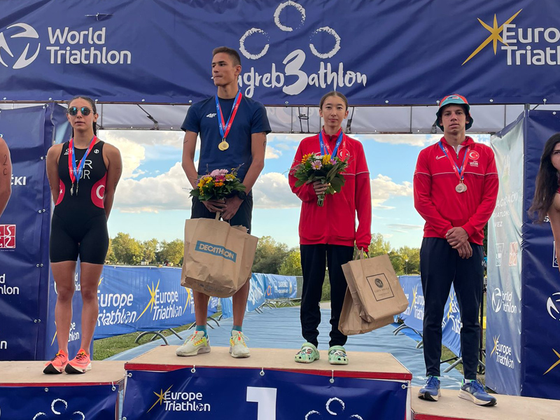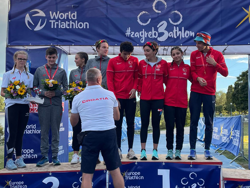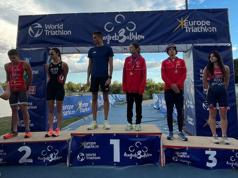 İZMİR Büyükşehir Gençlik ve Spor Kulübü triatlon sporcuları, Milli takım formasıyla yarıştıkları ETU Balkan Şampiyonası’ndan madalyalarla döndü. Hırvatistan’ın başkenti Zagrep’te 11 Eylül’de yapılan şampiyonada kulübümüz sporcuları, bir altın, bir gümüş ve iki bronz madalya kazandı. Kadınlarda U17’de yarışan Irmak Şereflioğlu, tüm rakiplerini geride bırakarak birincilik olup altın madalyayı boynuna taktı. U17 erkeklerde mücadele eden Arda Aracı, ikinci olup gümüş madalya kazanırken, U19 kadınlarda Özlenen İpek Günad ile U19 erkeklerde Emir Aracı ise üçüncülük kürsüsünde boy gösterdi.