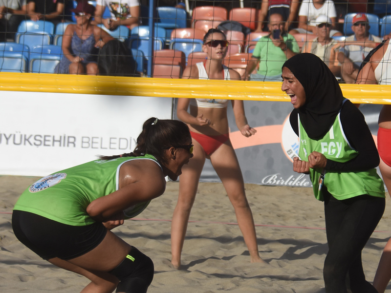 İZMİR Büyükşehir Belediyesi'nin, Dikili Belediyesi, Türkiye Voleybol Federasyonu (TVF) ve Uluslararası Voleybol Federasyonu (FIVB) iş birliğiyle AXA Sigorta sponsorluğunda organize ettiği FIVB 19 Yaş Altı Plaj Voleybolu Dünya Şampiyonası'nda ilk gün maçları tamamlandı.