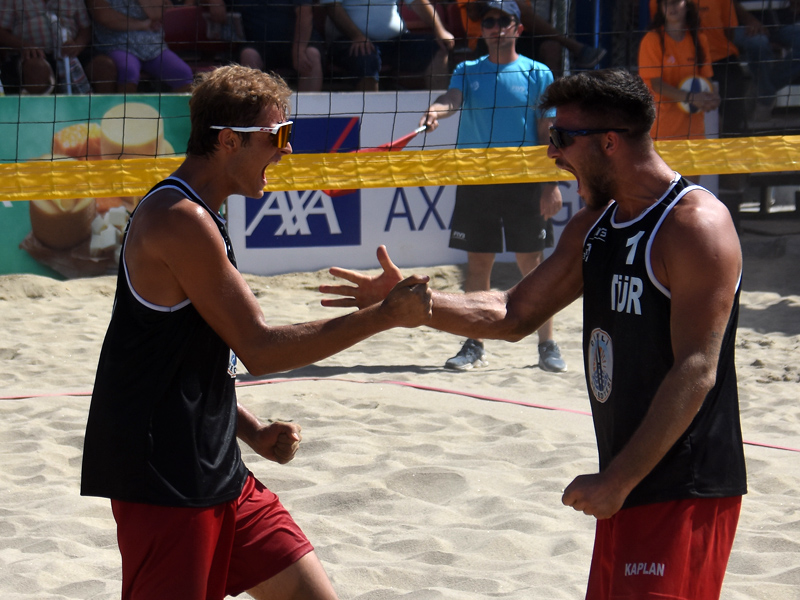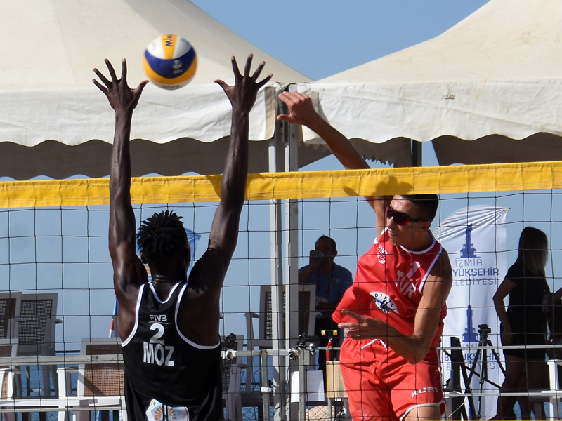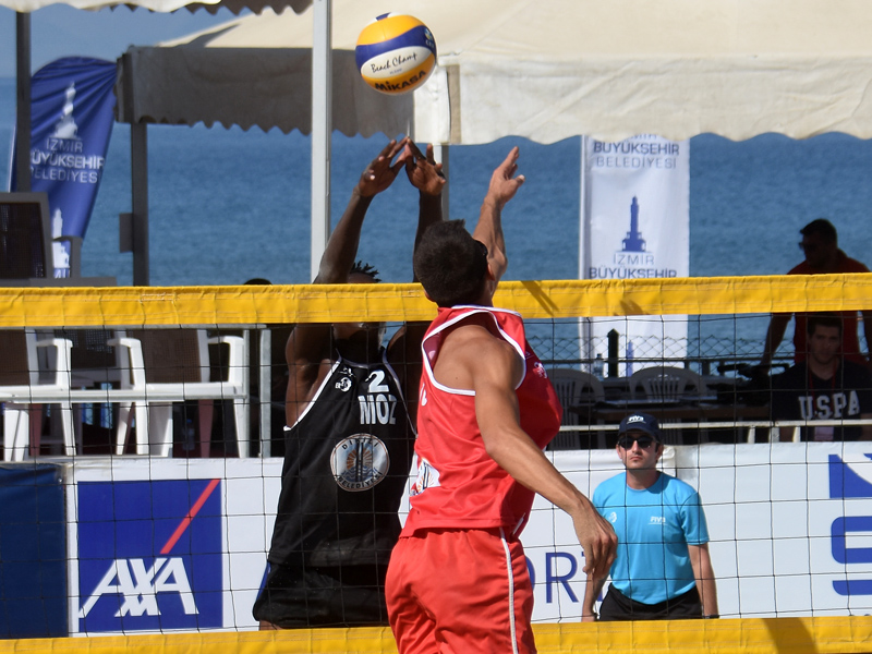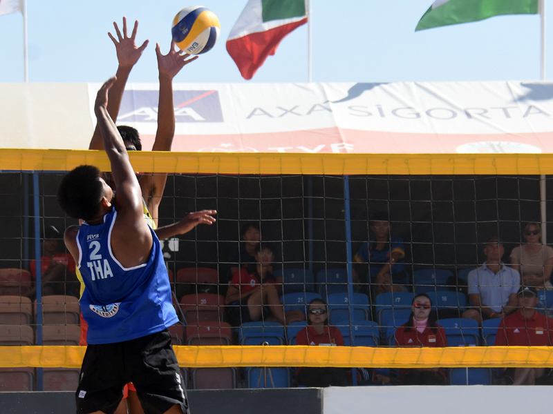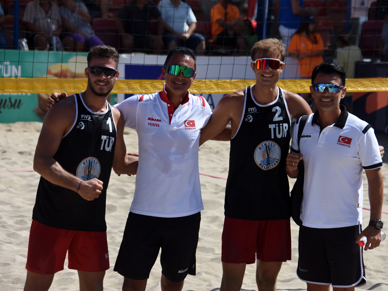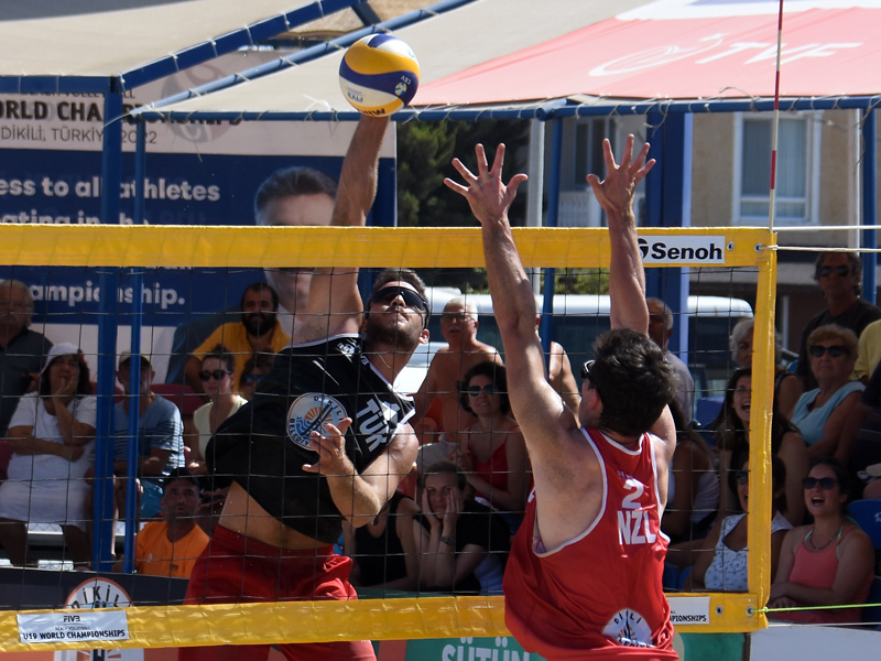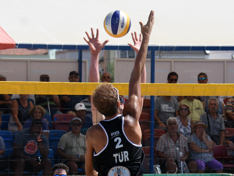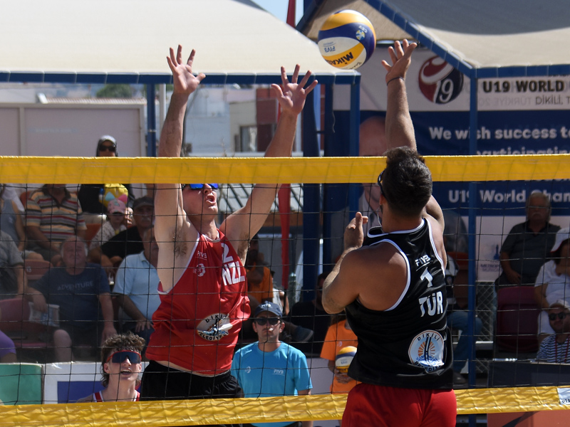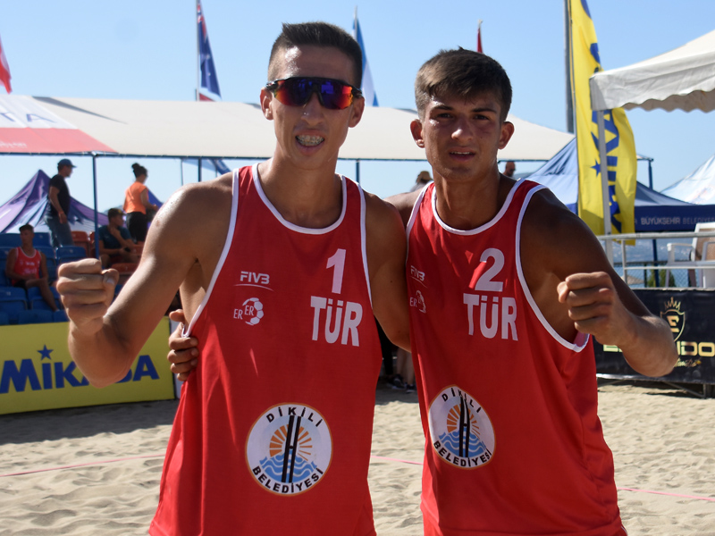 İZMİR Büyükşehir Belediyesi'nin, Dikili Belediyesi, Türkiye Voleybol Federasyonu (TVF) ve Uluslararası Voleybol Federasyonu (FIVB) iş birliğiyle AXA Sigorta sponsorluğunda organize ettiği FIVB 19 Yaş Altı Plaj Voleybolu Dünya Şampiyonası'nda heyecan devam ediyor. Dikili'de Dünya’nın 19 yaş altındaki en iyi sporcularının mücadele ettiği ve 18 Eylül Pazar gününe kadar devam edecek şampiyonanın ikinci gününde erkeklerde Bahadır Utku Kesgin – Furkan Ramazan Kaplan ikilisi, Yeni Zelandalı Dalton-Smith ikilisini 2-1 yenerek gruptan çıkmayı garantiledi.