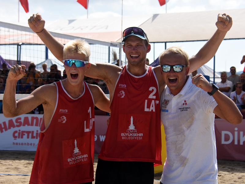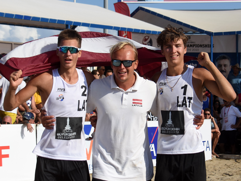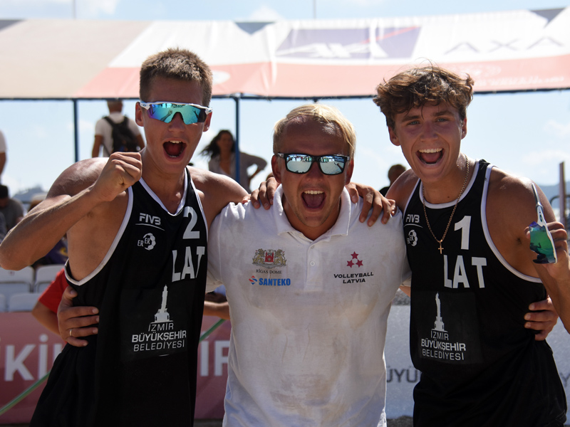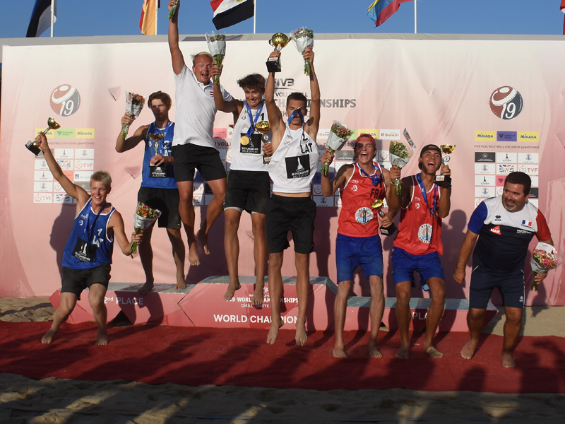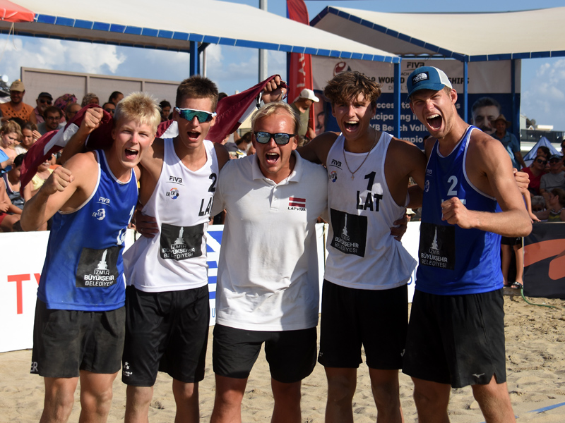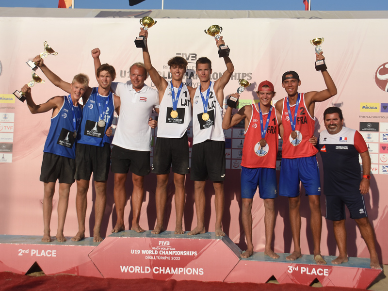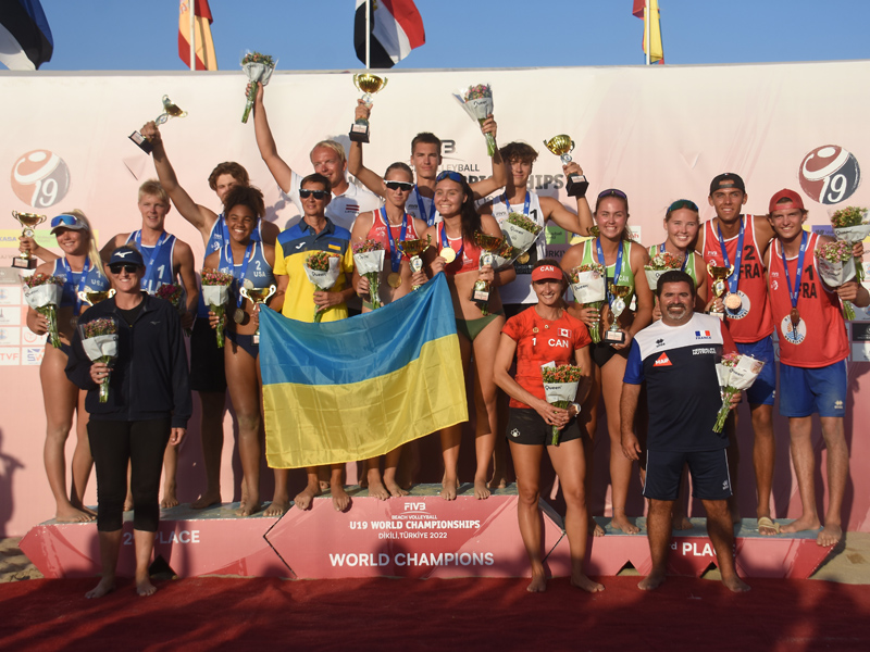 İZMİR Büyükşehir Belediyesi'nin, Dikili Belediyesi, Türkiye Voleybol Federasyonu (TVF) ve Uluslararası Voleybol Federasyonu (FIVB) iş birliğiyle AXA Sigorta sponsorluğunda organize ettiği FIVB 19 Yaş Altı Plaj Voleybolu Dünya Şampiyonası'nda kadınlarda Ukrayna, erkeklerde Letonya şampiyonluğa uzanan ülkeler oldu.