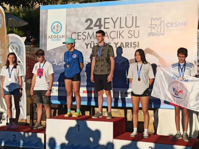 İZMİR Büyükşehir Belediyesi Gençlik ve Spor Kulübü triatlon sporcuları, 24 Eylül'de düzenlenen Çeşme Açık Su Yarışları'nda madalyaları topladı. Yarışmada Arda Aracı 5000 metre 19 yaş altı erkeklerde, İpek Günad 1500 metre 19 yaş altı kadınlarda, Tuna Tunca 5000 metre engelli yüzücüler kategorilerinde birincilik kürsüsüne çıktı.