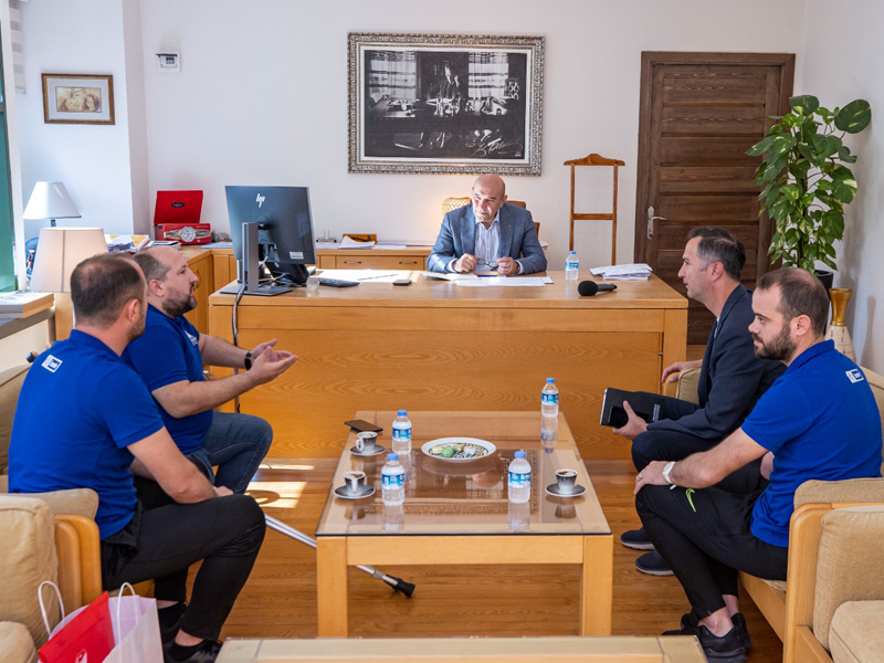 Milli Sporcu Erdi Arslan ise Başkan Soyer’e, arkasında ismi yazılı 35 numaralı Ay-Yıldızlı milli formayı hediye etti. Arslan, “8 yıldır İzmir Büyükşehir Belediyesi‘nde oynuyorum. 6 yıldır da milli takımda görev yapıyorum. 4 aydır kamptaydık. Uzun çalışmalarımız sonucunda İstanbul’da başarıya ulaştık. Türkiye olarak takım sporlarında ilk dünya kupamızı kazanmanın gururunu yaşadık. Sizinle burada bir arada olmak çok büyük bir moral oldu bana. Destekleriniz için teşekkür ederim” ifadelerini kullandı.