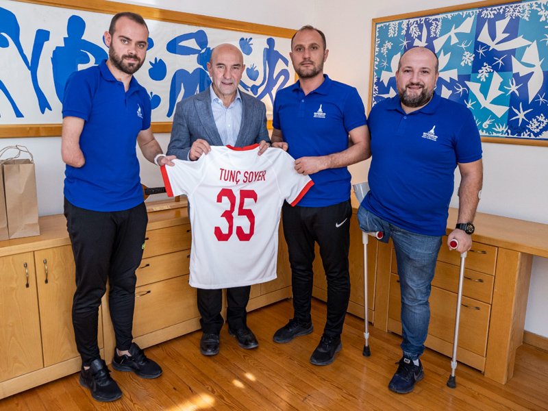 İZMİR Büyükşehir Belediye Başkanı Tunç Soyer, 2022 Dünya Kupası şampiyonu Ampute Futbol Milli Takımı’nın kalesini koruyan İzmir Büyükşehir Belediyesi sporcusu Erdi Arslan’ı konuk etti. Başkan Tunç Soyer’in İzmir Sanat’taki makamında düzenlenen ziyarette milli sporcu Erdi Arslan’a İzmir Büyükşehir Belediyesi Gençlik ve Spor Hizmetleri Dairesi Başkanı Hakan Orhunbilge, Milli Takım’da görev yapan İzmir Büyükşehir Belediyesi Spor Kulübü personeli Polat Doğan ve İzmir Büyükşehir Belediyesi Spor Kulübü Antrenörü Evren Uyanık eşlik etti.