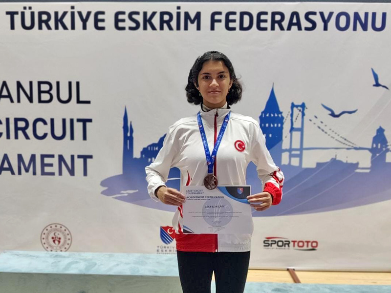 İZMİR Büyükşehir Belediyesi Gençlik ve Spor Kulübü eskrim sporcusu Lina Elmiladi, İstanbul’dan madalya ile döndü. İstanbul’da 6 Kasım’da Ay-Yıldızlı forma ile Yıldızlar European Cadet Circuit müsabakalarında boy gösteren sporcumuz Lina Elmiladi, 73 sporcu ile yarıştı. Yarışmalar sonucunda yedinci olan Elmiladi, bronz madalyayı boynuna taktı.
