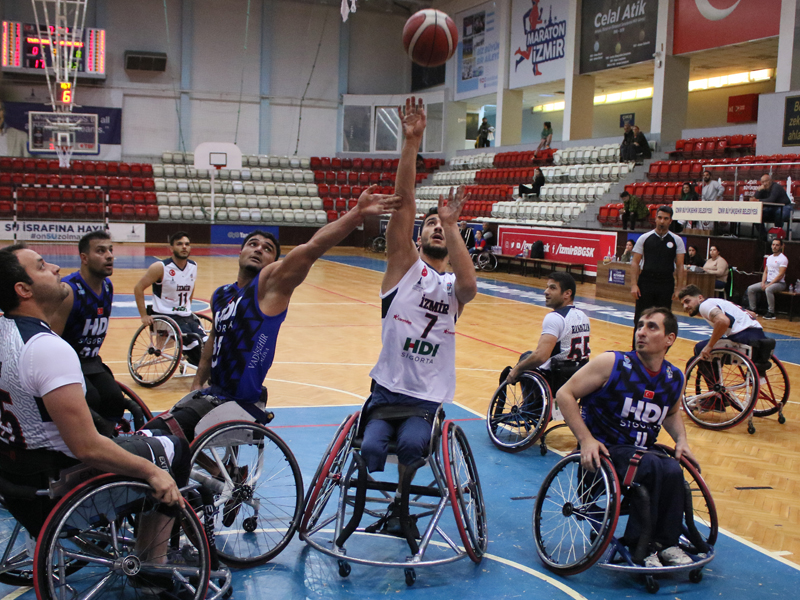 TEKERLEKLİ Sandalye Basketbol Süper Ligi yedinci hafta maçında İzmir Büyükşehir Belediyesi Gençlik ve Spor Kulübü, İzmir’de Yalova Ortopedikler SK’yı 79-63’lük skorla yendi.