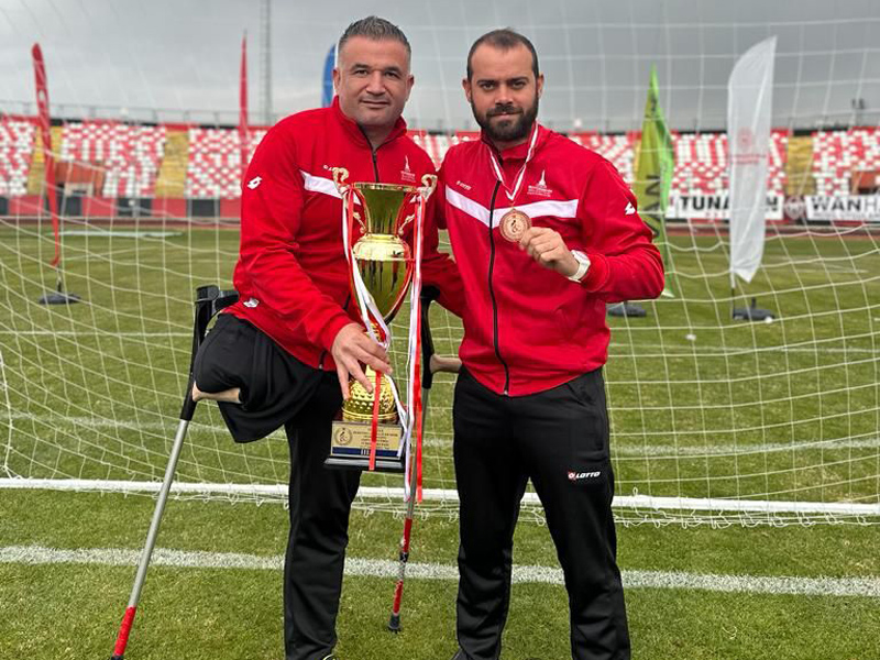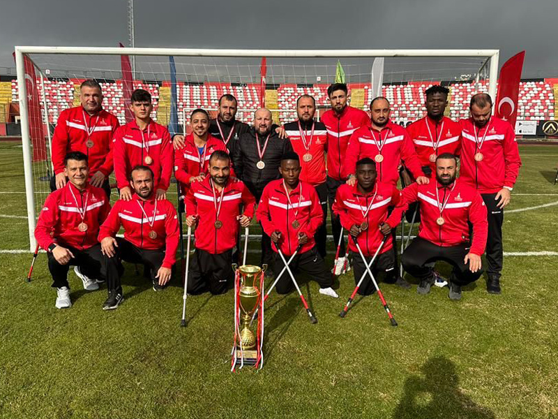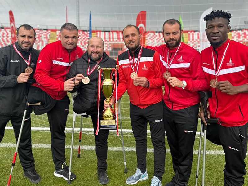 İZMİR Büyükşehir Belediyesi Gençlik ve Spor Kulübü Ampute Futbol Takımı, Van’da düzenlenen Ampute Futbol Türkiye Kupası üçüncülük maçında geçen sezon namağlup Süper Lig şampiyonu olan Etimesgut Belediyesi'ni 2-1 yendi ve üçüncülük kupasını kazandı. Van Atatürk Şehir Stadı’nda oynanan karşılaşmanın ilk 25 dakikası takımımız, Frank ve Rüstem’in golleriyle 2-0 galip bitirdi. Ankara temsilcisi ikinci devrede bir gol bulsa da, takımımız karşılaşmayı sahadan 2-1’lik galibiyetle noktalamayı başardı ve Türkiye Kupası’nda üçüncü olup kupayı havaya kaldırdı.