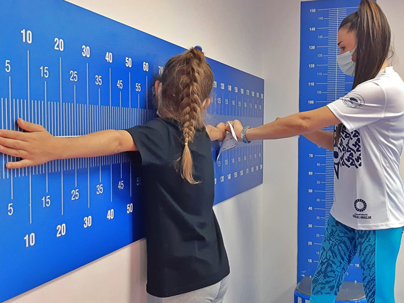Ölçüm testlerinde, Skinfold yağ ölçümü (5 bölge), flamingo denge, esneklik, uzun atlama, el göz koordinasyonu, kol kuvveti, vücut uzunluk ölçümleri, boy kilo ölçümü, el kavrama kuvvet ölçümü, sırt bacak kuvvet ölçümü, eklem açı ölçümleri, eklem mini çap ölçümü, geriye sağlık topu atma, mekik, dikey sıçrama ölçümü, 5 metre çeviklik, 20 metre sürat, dayanıklılık ölçümü, kulaç uzunluğu, oturma yüksekliği değerlendiriliyor.