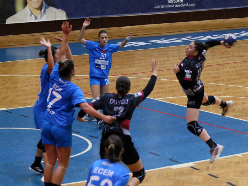 HENTBOL Kadınlar Süper Ligi'nde zirve takibi yapan İzmir Büyükşehir Belediyesi Gençlik ve Spor Kulübü, 9. hafta maçında İzmir’de Totemcard Ada Sokağı’nı 41-27 yendi.