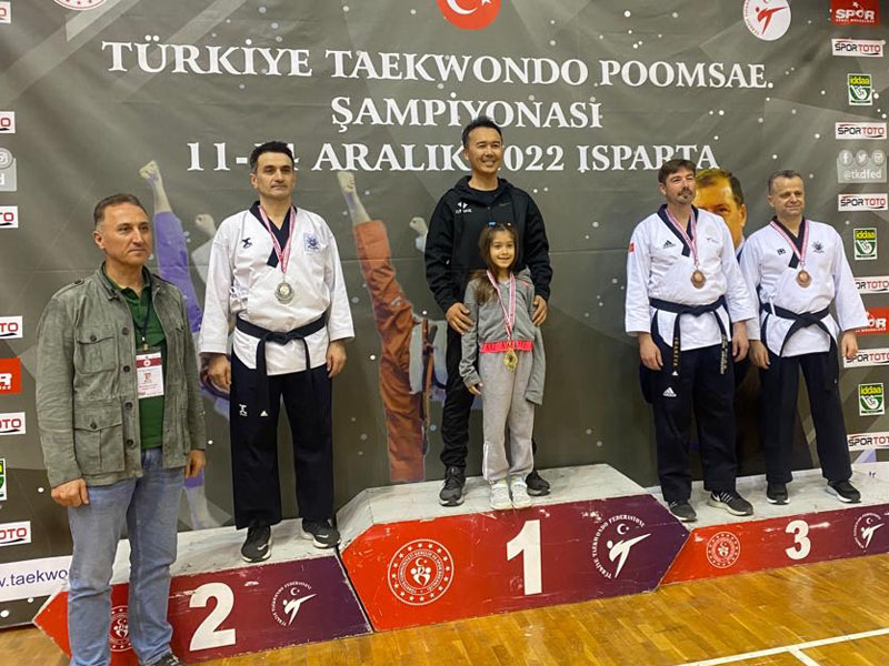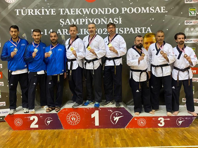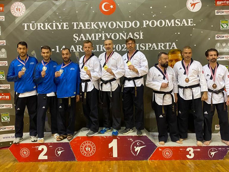 İZMİR Büyükşehir Belediyesi Gençlik ve Spor Kulübü Poomsae takımı, Türkiye Şampiyonası’ndan madalya ile döndü. Isparta’da 11-14 Aralık 2022 tarihleri arasında 48 ilden 281 kulüp ve yaklaşık 1200 sporcunun katılımı ile düzenlenen şampiyonada Hayri Temel Alper, Volkan Yalçınkaya ve Alper Sadıkoğlu’ndan oluşan 30 yaş üstü Erkekler Senkron Takımımız, tüm rakiplerini geçerek şampiyon oldu.