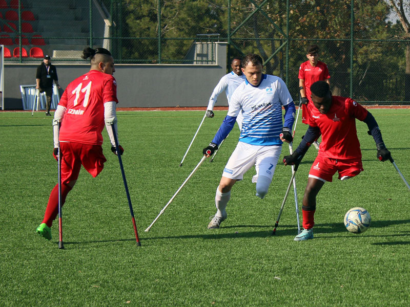 AMPUTE Futbol Süper Ligi’nde İzmir Büyükşehir Belediyesi Gençlik ve Spor Kulübü, altıncı hafta maçında evinde Pendik Engellileri 4-0'lık skorla yendi. Dr. Behçet Uz Rekreasyon Alanı Futbol Sahası’ndaki karşılaşmanın ilk yarısını İstanbul temsilcisi önünde 23. dakikada Atila'nın golüyle 1-0 önde tamamladı. İkinci 25 dakika da takımımız, rakibi karşısında 27'de Rüstem, 29'da Yusuf (Kendi kalesine) ve 45'te penaltıdan Carhalvo'nun golleriyle maçtan 4-0'lık galibiyetle ayrıldı.