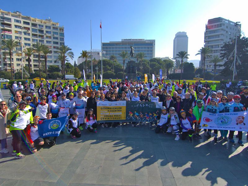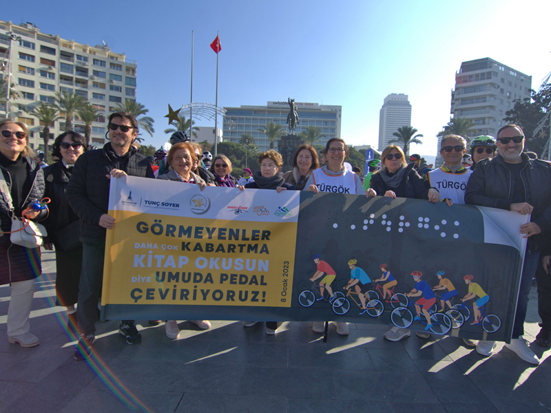 İZMİR Büyükşehir Belediyesi Gençlik ve Spor Hizmetleri Daire Başkanlığı ve Türkiye Görme Özürlüler Kitaplığı'nın (TÜRGÖK) desteklediği, Engelsiz İzmir, Umuda Pedal Derneği ve Eşpedal Derneği işbirliğiyle yaklaşık 350 bisikletli “Görmeyenler Daha Çok Kabartma Kitap Okusun Diye Umuda Pedal Çeviriyoruz” sloganıyla bir araya geldi.