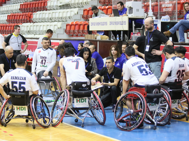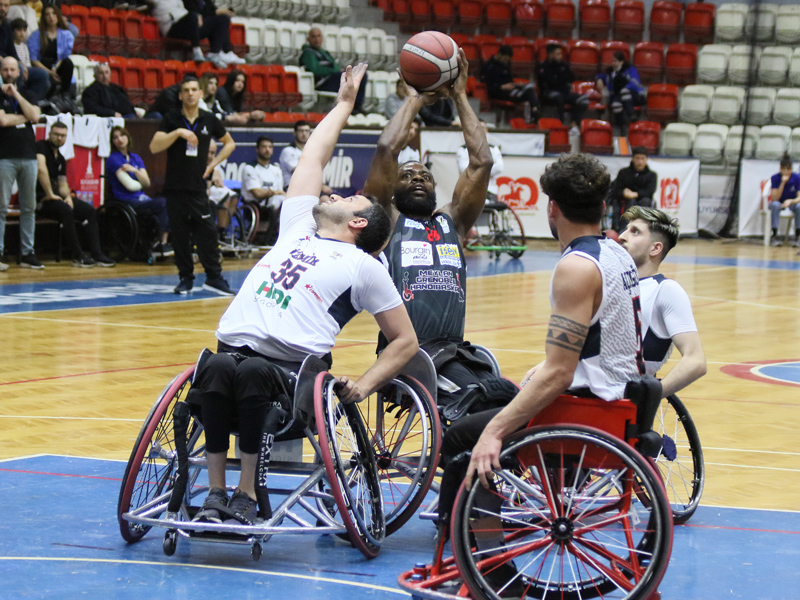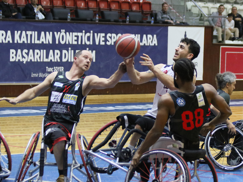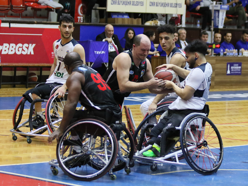 İzmir’de devam eden IWBF (Uluslararası Tekerlekli Sandalye Basketbol Federasyonu) Euro Cup 2 mücadelesinde İzmir Büyükşehir Belediyesi Gençlik ve Spor Kulübü, grubunun ikinci maçında Meylan Grenoble Handibasket’i 86-50’lik skorla mağlup etti. Fransız temsilcisi karşısında baştan sona üstün bir oyun sergileyen İzmir Büyükşehir Belediyesi Gençlik ve Spor Kulübü, ilk periyotu 23-16, devreyi de 47-28 önde kapattı. Son periyoda 60-39 önde başlayan İzmir temsilcisi, karşılaşmadan da 86-50’lik skorla galibiyetle ayrılmayı bildi.