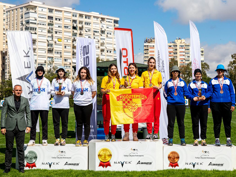 İZMİR Büyükşehir Belediyesi Gençlik ve Spor Kulübü okçuları, Antalya’da15 Mart’ta başlayan 18 Mart Şehitleri Türkiye Kupası TSP1 yarışmasında kürsüde boy gösterdi. 19 Mart’ta sona erecek olan organizasyonda ok atan Şüheda Güneri, Gökçe Ersoy ve Sıla Özdemir’den oluşan takımımız, yaptıkları atışlar sonucunda hem gençler (U21), hem de büyük kadınlar kategorisinde üçüncü olup iki kez kürsüde bronz madalyanın sahibi oldu.