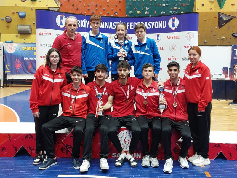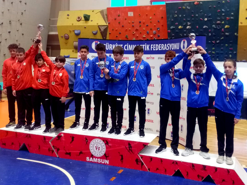 İZMİR Büyükşehir Belediyesi Gençlik ve Spor Kulübü cimnastik takımımız, Samsun'dan üç kupayla döndü. 10 takımdan 120 sporcunun katılımıyla gerçekleşen organizasyonda Büyük Erkek, Genç Erkek ve Yıldız Erkek Takımımız üçüncülük kupasının sahibi oldu.