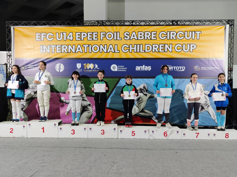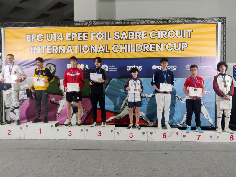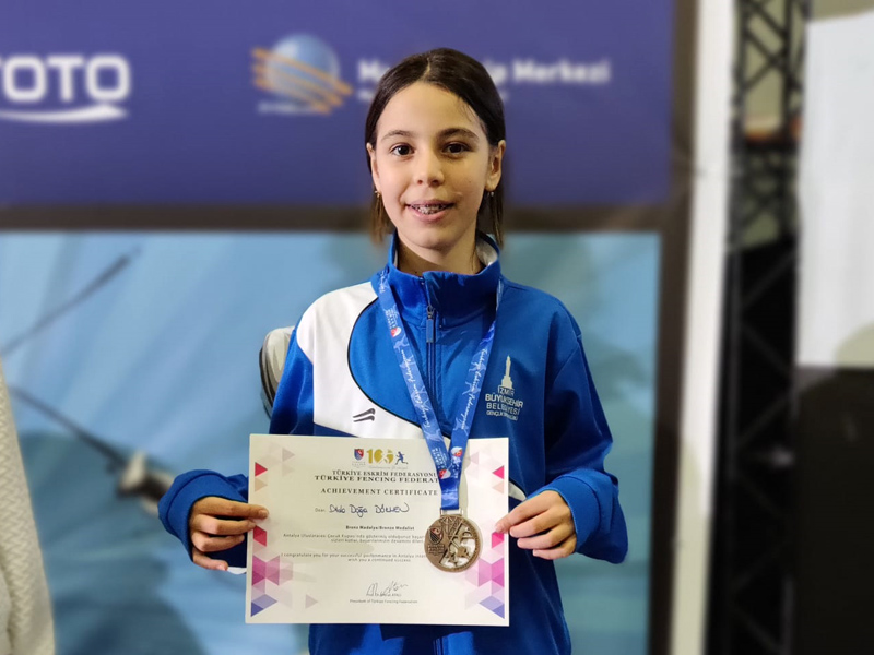 İZMİR Büyükşehir Belediyesi Gençlik ve Spor Kulübü eskrim sporcuları, Uluslararası Çocuk Kupası'ndan üç madalya ile döndü. Antalya'da 15-23 Nisan tarihlerinde yaklaşık bin sporcunun yer aldığı şampiyonada sporcumuz Alp Deniz Öcek ve Parat Ripost Spor Kulübü sporcularından Ali Şendurgut ve Arda Ziya Osmanağaoğlu'ndan oluşan takımımız ikinci olarak gümüş madalya kazandı. U12 kız kılıç kategorisinde mücadele edeb sporcumuz Ada Doğa Dökmen, 64 sporcu sporcu arasında bronz madalya kazanırken, bir diğer sporcumuz Alp Deniz Öcek, U14 erkek kılıç kategorisinde bronz madalyaların sahibi oldu.