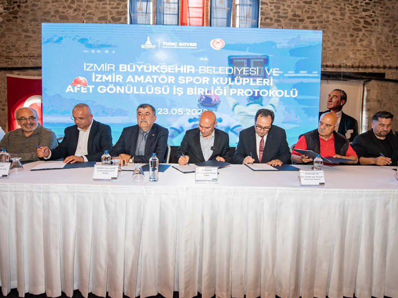 İZMİR Büyükşehir Belediyesi ile İzmir Amatör Spor Kulüpleri Federasyonu arasında gönüllü arama kurtarma ekipleri oluşturulması için işbirliği protokolü imzalandı. Tarihi Havagazı Fabrikası’nda İzmir Büyükşehir Belediye Başkanı Tunç Soyer’in ev sahipliği yaptığı imza törenine Başkan Tunç Soyer’in eşi Neptün Soyer, Cumhuriyet Halk Partisi (CHP) İzmir İl Başkanı Şenol Aslanoğlu, İzmir Büyükşehir Belediyesi Genel Sekreter Yardımcısı Ertuğrul Tugay, İzmir Büyükşehir Belediyesi İtfaiye Dairesi Başkanı İsmail Derse, Gençlik ve Spor Hizmetleri Dairesi Başkanı Hakan Orhunbilge, Deprem Risk Yönetimi ve Kentsel İyileştirme Dairesi Başkanı Banu Dayangaç, İzmir Amatör Spor Kulüpleri Federasyonu (ASKF) Başkanı Efkan Muhtar ve İzmir’de faaliyet gösteren amatör kulüplerin bağlı olduğu 11 birlik başkanı, sporcular, sivil toplum kuruluşları, dernek ve odaların temsilcileri ile itfaiye personeli katıldı.