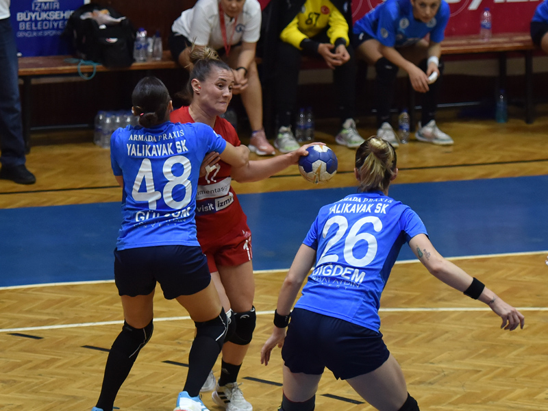 İZMİR Büyükşehir Belediyesi Gençlik ve Spor Kulübü Hentbol Kadın Takımı, Süper Lig 3'lük - 4'lük maçında Armada Praxis Yalıkavak SK'yı 37-29 mağlup ederek seride 2-0 öne geçip ligi üçüncü olarak tamamladı. Celal Atik Spor Salonu'nda oynanan karşılaşmada devreyi ekibimiz 18-14 önde tamamladı. Karşılaşmanın ikinci devresinde farkı koruyan takımımız, salondan 8 sayı farkla 37-29 galip ayrıldı.