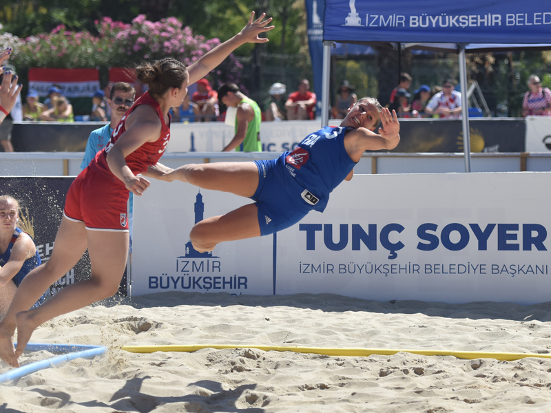 İZMİR Büyükşehir Belediyesi'nin plaj sporlarının merkezi olarak hizmete sunduğu İnciraltı Spor Tesisleri'nde düzenlenen EHF Avrupa U17 Plaj Hentbolu Şampiyonası'nda temsilcimiz kalmadı. Avrupa Hentbol Federasyonu, Türkiye Hentbol Federasyonu ve İzmir Büyükşehir Belediyesi işbirliği ile düzenlenen şampiyonanın üçüncü gününde millilerden, kız takımımız Portekiz'e 2-1'lik skorla yenildi, grubunu 4 puanla dördüncü sırada tamamladı. 9'luk-12'lik maçında kızlarımız Hırvatistan'a 2-0 mağlup oldu. Milliler pazar günü Fransa ve Polonya ile karşılaşacak.