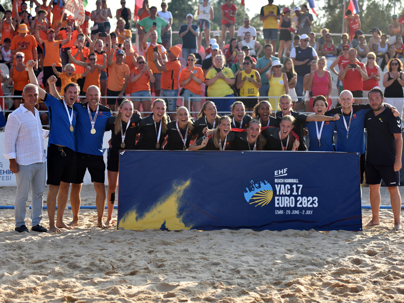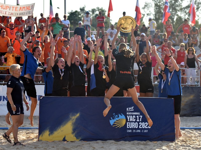 İZMİR Büyükşehir Belediyesi'nin plaj sporlarının merkezi olarak hizmete sunduğu İnciraltı Spor Tesisleri'nde düzenlenen EHF Avrupa U17 Plaj Hentbolu Şampiyonası'nda kızlarda Hollanda, erkeklerde Macaristan şampiyonluğa uzanan ülkeler oldu.