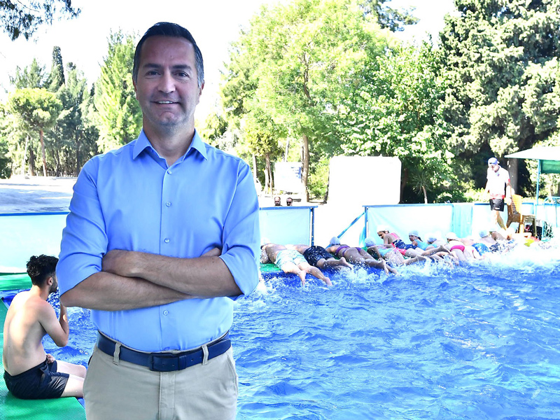 İlk yıl 3 havuzla yola çıktıklarını, bugün 7 rakamına ulaştıklarını belirten Hakan Orhunbilge, “Hem kentin çeperlerinde hem merkezinde olabildiğince fazla çocuğa ulaşmaya çalışıyoruz. Portatif havuzlar dışında yüzme eğitimlerimiz devam ediyor. 2 açık 2 kapalı 4 havuzumuz var, orada da 30 bin çocuğa yüzme eğitimi veriyoruz. İzmir 650 kilometre kıyı şeridine sahip önemli bir sahil şehri. Su sporlarına ayrıcalık tanıyoruz” diye konuştu.