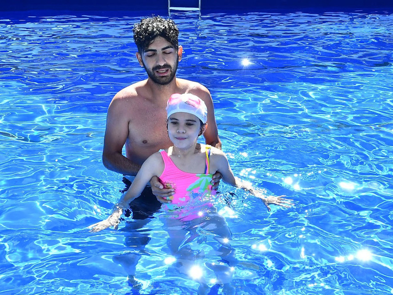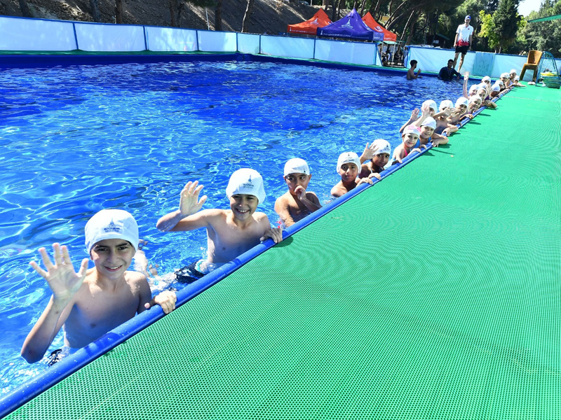 Havuzlardaki hijyene çok önem verildiğini özellikle belirten Orhunbilge, “Kapalı-açık havuzlarımızda en önemli konu çocuklarımızın sağlığı. Burada duş almadan hiçbir çocuğumuzu havuza alamıyoruz. Havuzun girişinde ayakların temizliği için su var. Her gün havuzlarımızdan numune alınıyor. Velilerimizin gönlü bu konuda rahat olsun. İşin uzmanı eğitmenlerimiz var. Çocukların sürekli başında duruyorlar” dedi.