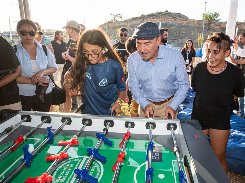 Başkan Soyer, Özdere 100. Yıl Gençlik ve Spor Yerleşkesi’nin açılışında tesiste iki gün boyunca kamp kuran gençlerle bir araya geldi. Açılışın ardından gençleri kamp alanında da ziyaret eden Soyer birlikte langırt oynadı. Eskiizmir Gençlik Spor Kulübü ve Selçuk Çamlık Spor Kulübü futbol müsabakasının başlama vuruşunu yapan Başka Soyer, voleybol maçını da izledi.