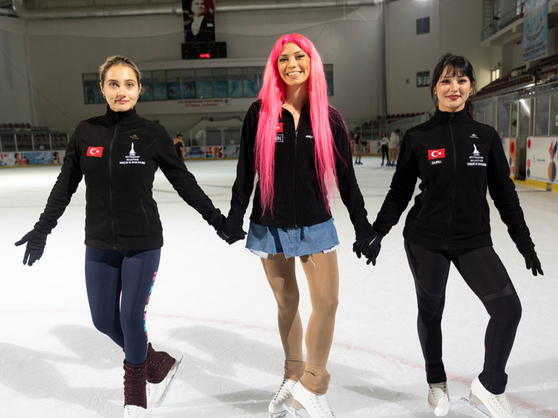 Üniversite öğrencisi Deniz Diren Aydın da, buz patenine ocak ayında başladığını belirterek “Hiç aklımda yoktu, birden gelişti. Bir iki kere gelmiştim sonra her gün gelmeye başladım. 5 gün sonra kendi patenimi alıp profesyonelce ilerlemek istedim. Her gün saatlerce çalıştım. Birkaç ay sonra takıma girdim. Burasının bana huzur verdiğini hissettim. Hosteslik eğitimi alıyordum, onu bıraktım. Hayatımda çok değişiklik oldu. Bütün gün buradayım. Bale ve cimnastik eğitimi de alıyoruz. Herkesin gelebileceği bir yer. Herkesin en az bir kere bile olsa denemesi gerekiyor” diye konuştu.
