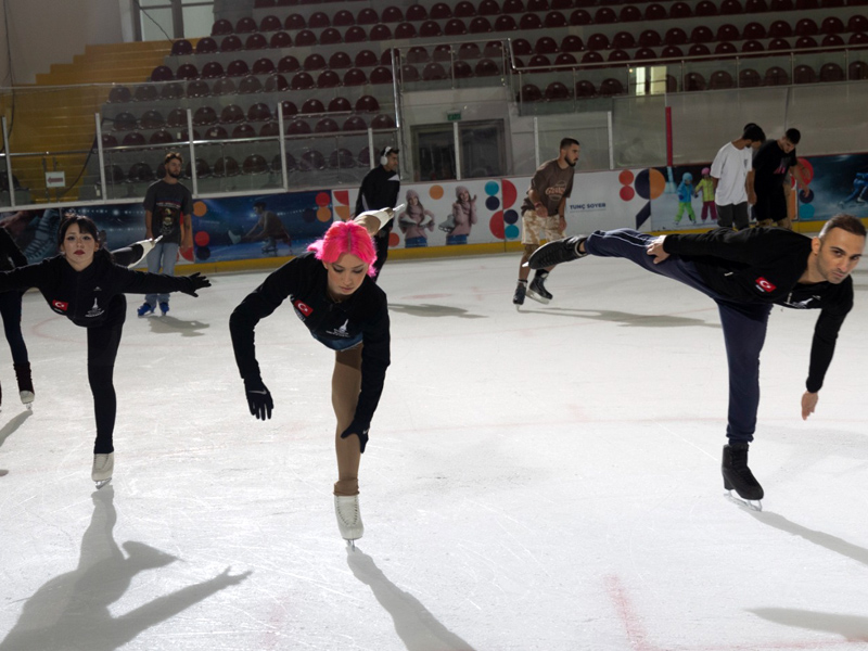 Tesiste antrenör olarak görev yapan Neşe Olcay Hünerli ise, “Halk seanslarımız var. Dileyen herkes içeri girip buz pateni yapabiliyor. Kurslarımız var. Temel eğitim veriyoruz. Temel eğitim düzeyini bitirenler arasından yaşı uygun olan ve yarışmalara gidebilecek çocuklarla yol alıyoruz. Burada kız sporcular var, artistik pateni tercih ediyorlar. Erkek sporcularımıza da senkronize branşlarımız var. Takım sporları yapıyoruz. Daha çok erkek sporcularımızın tercih ettiği buz hokeyi branşı var. Branşlarda da federasyon faaliyetlerine katılıyoruz. Aynı zamanda ‘herkes için spor’ dediğimiz için engelli vatandaşlarımıza özel perşembe günleri etkinliklerimiz oluyor” diye konuştu.