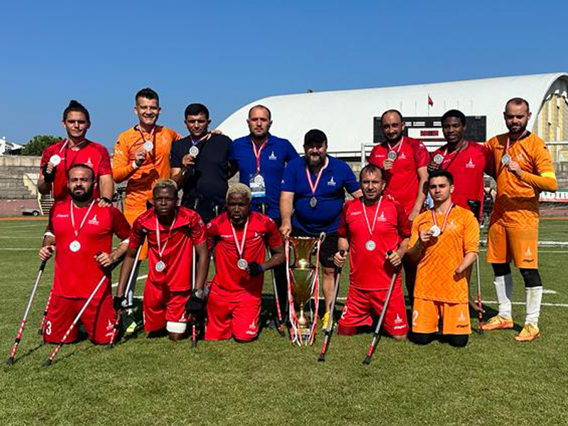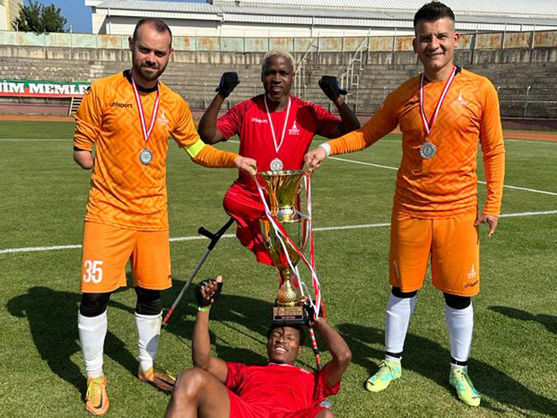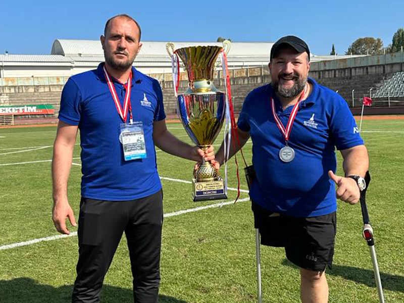 İZMİR Büyükşehir Belediyesi Gençlik ve Spor Kulübü ampute futbol takımımız, Türkiye Kupası'nda ikinci oldu. Yalova'da düzenlenen Ampute Futbol Türkiye Kupası'nda finalinde Alves Kablo ile karşılaşan takımımız, ilk yarısı 0-0 biten maçta sahadan 3-0'lık yenilgiyle ayrılarak Türkiye İkincisi oldu. Türkiye Kupası'nda grup maçlarında ODTÜ'yü 3-0, Gebze Engelli Gücü'nü 6-0 yenen mavi-beyazlılar, Alves Kablo'ya 2-0 mağlup olmasına rağmen yarı finale yükselmişti. Yarı finalde ekibimiz, normal süresi 1-1 biten maçtan Şahinbey Belediyesi'ni penaltılarla 6-5 yenerek finale kalmayı başarmıştı.