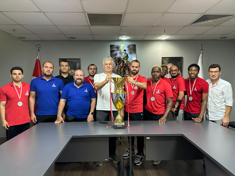 Celal Atik Spor Salonu'nda sporcularımızla bir araya gelen Egeli, tüm takımı ve emeği geçenleri tebrik ederek, "Geçen sene olduğu gibi bu yılda kupa müzemizde. Bu başarıda payı olan herkesi kutluyorum. Yeni sezonda da takımımıza inanıyoruz” dedi.