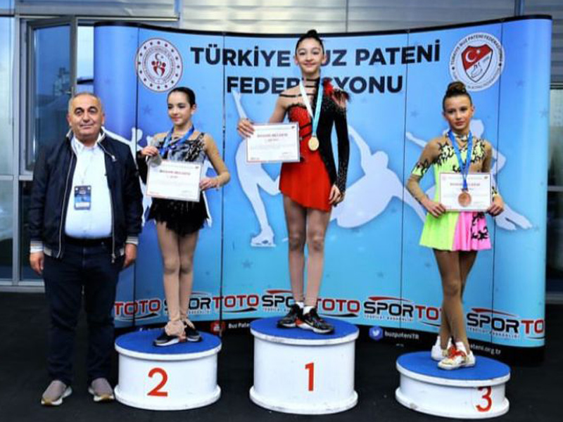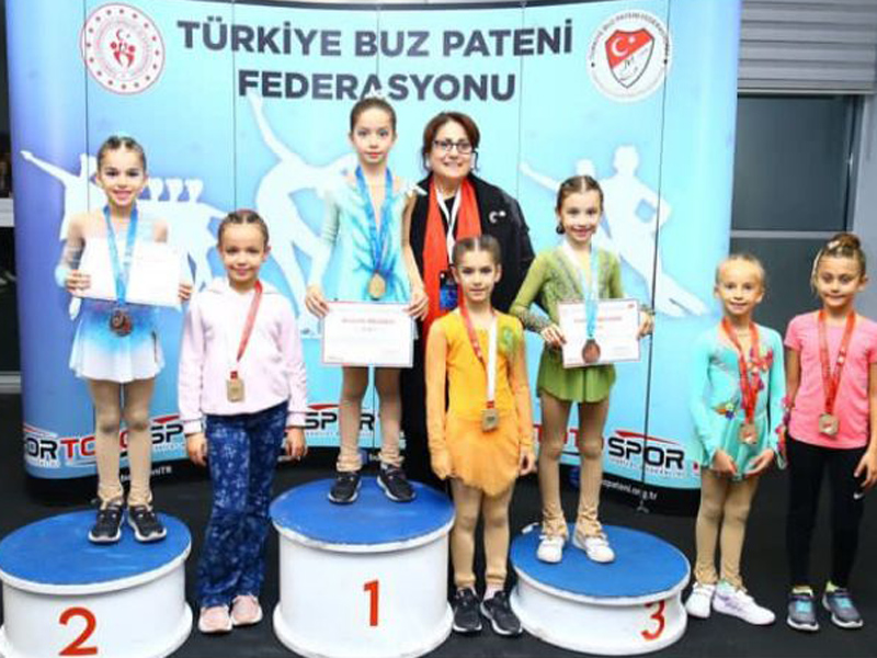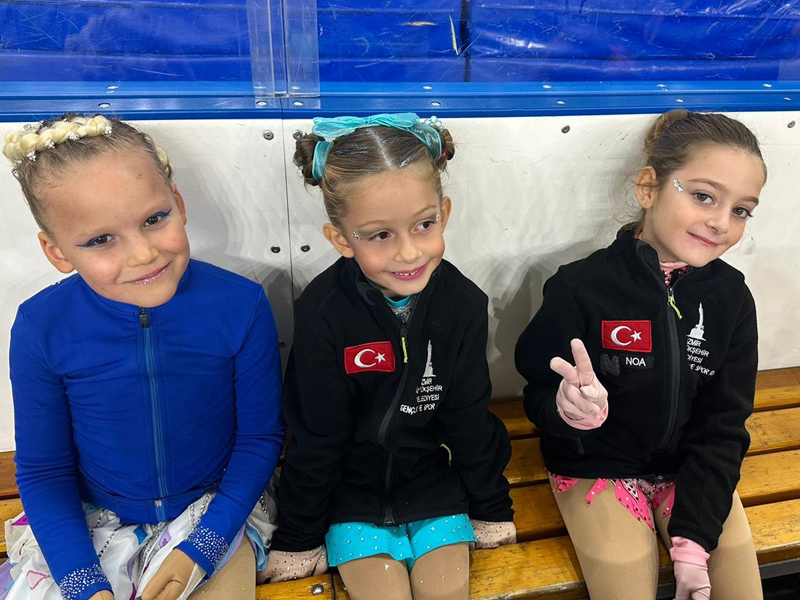 İZMİR Büyükşehir Belediyesi Gençlik ve Spor Kulübü artistik buz pateni sporcuları kürsüye çıktı.
