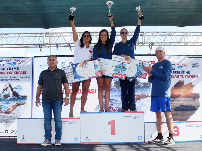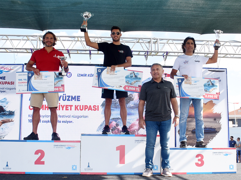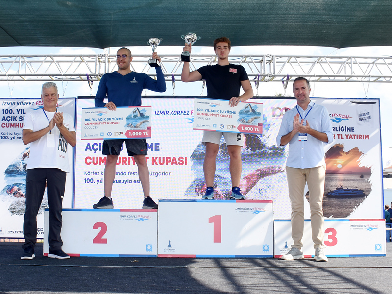 Yaşayan Körfez yatırımlarıyla tekrar canlılığına kavuşan İzmir Körfezi, altıncı kez düzenlenen festivalle İzmirlilerle buluşmaya devam ediyor. Her yaştan İzmirliye hitap edecek içeriklerle hazırlanan festival programı ikinci gününde de katılımcılar yoğun ilgi gösterdi. Sabahın erken saatlerinde İzmir Büyükşehir Belediye Başkanı Tunç Soyer’in de Körfez’de yüzerek sporculara destek verdiği yarışta kazanan sporcular belli oldu. 2 kategoride düzenlenen yarışta ilk üçe ödüllerini İzmir Büyükşehir Belediyesi Genel Sekreter Yardımcısı Ertuğrul Tugay, İZSU Genel Müdürü Ali Hıdır Köseoğlu, İzmir Büyükşehir Belediyesi Gençlik ve Spor Kulübü Yönetim Kurulu Başkanı Hüseyin Egeli, İzmir Büyükşehir Belediyesi Gençlik ve Spor Dairesi Başkanı Hakan Orhunbilge verdi.