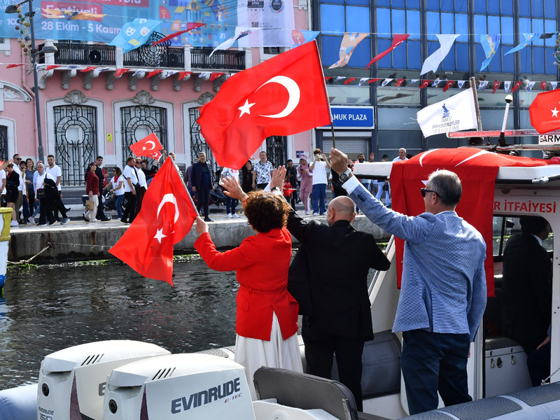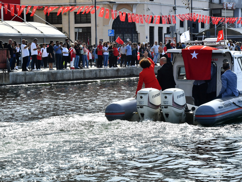 İZMİR Büyükşehir Belediyesi tarafından bu yıl 6’ncısı düzenlenen İzmir Körfez Festivali’nin üçüncü gününde denizdeki rekabet optimist ve yat yarışları ile başladı. İzmir Büyükşehir Belediye Başkanı Tunç Soyer ve eşi Neptün Soyer İzmir Körfezi’nde sporcuların heyecanına ortak oldu. İzmir Büyükşehir Belediye Başkanı Tunç Soyer, “Herkese nasip olmaz, ancak biz ulu önder Mustafa Kemal Atatürk sayesinde yüzüncü yıl coşkusunu yaşıyoruz. Yüzüncü yılın son, ikinci yüzyılın ilk gününü hep beraber yaşıyoruz. Çok şanlıyız. Yaşasın Cumhuriyet, Yaşasın Mustafa Kemal Atatürk. İzmirliler şunu bilsin ki İkinci Yüzyıl’da her şey çok daha güzel olacak” dedi.