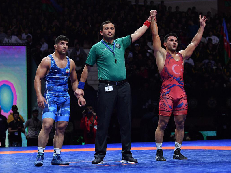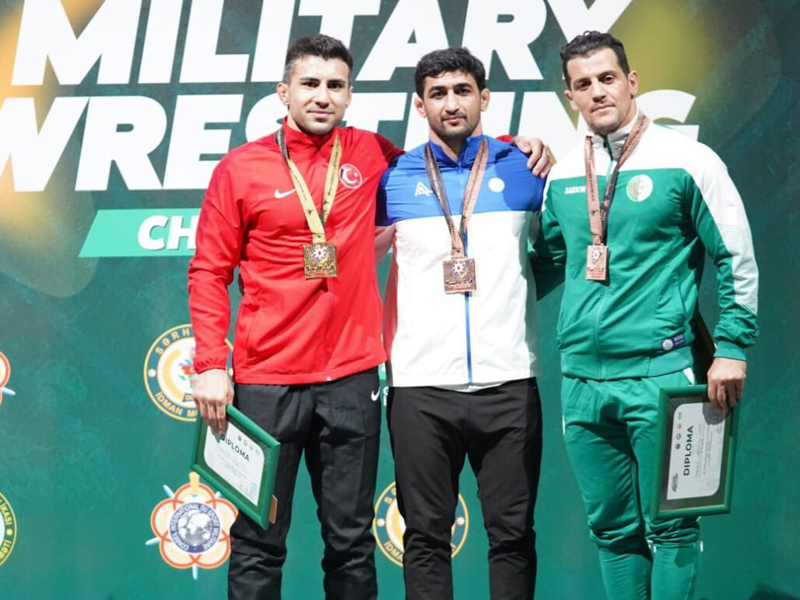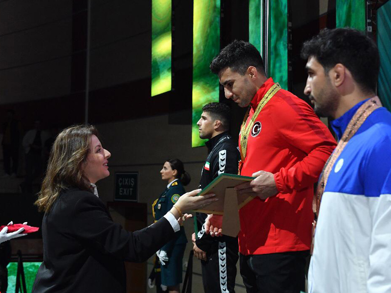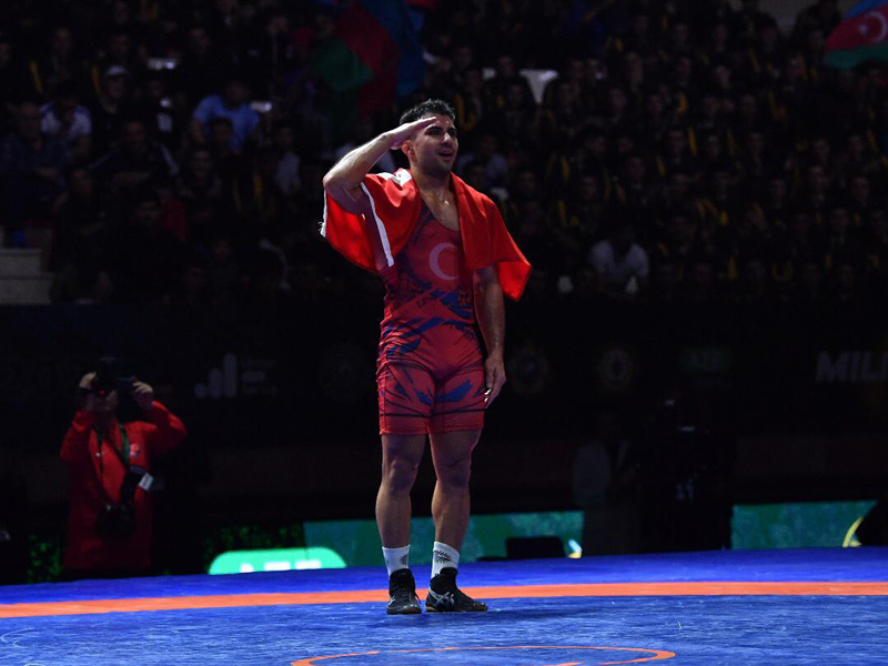 İZMİR Büyükşehir Belediyesi Gençlik ve Spor Kulübü güreşçisi Hasan Berk Kılınç, Azerbaycan’da düzenlenen Ordulararası Dünya Şampiyonası’nda altın madalya kazandı. Bakü’de 18 ülkeden 220 sporcunun katıldığı organizasyonda 82 kiloda mindere çıkan Kılınç, ilk turda Rus rakibi Vadim Chernyshew’i yarı finalde ise Azerbaycanlı Aliyev Azad’ı yenerek finale kaldı. Altın madalya mücadelesinde sporcumuz Hasan Berk Kılınç, İranlı rakibi Yasin Yazdi’yi yenerek kürsünün zirvesine çıkmayı başardı.