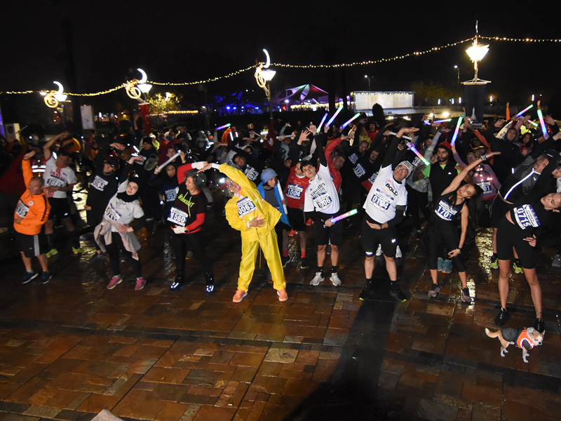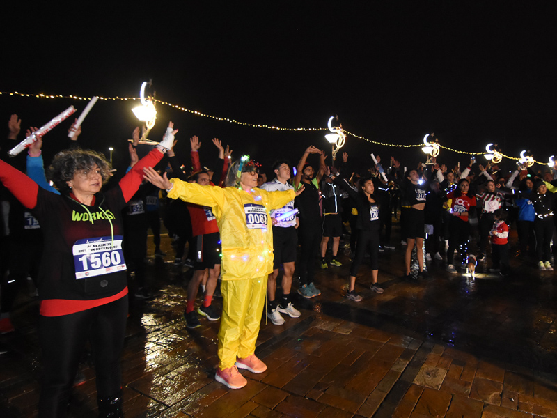 Koşu ve bisiklet sürüşüne katılanlar ışıklı süsler ve fenerler eşliğinde geceyi renklendirdi.