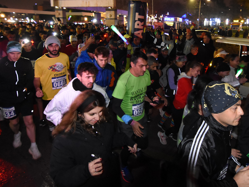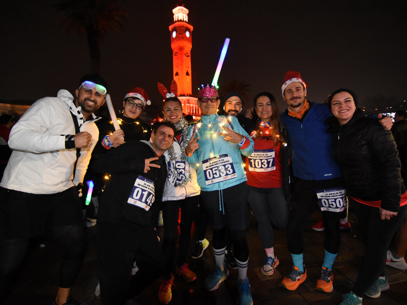 İZMİR Büyükşehir Belediyesi Gençlik ve Spor Kulübü’nün yılın en uzun gecesinde düzenlediği “En Uzun Koşu” İzmirliler tarafından tekrardan ilgiyle karşılandı. Konak Saat Kulesi önüne gelerek ısınan binlerce İzmirli, 21 Aralık saat 21.12’de işaret fişeğiyle beraber koşuya Konak Vapur İskelesi’nden başladı. Koşunun startını İzmir Büyükşehir Belediyesi Gençlik ve Spor Hizmetleri Dairesi Başkanı Hakan Orhunbilge, İzmir Büyükşehir Belediyesi Gençlik ve Spor Kulübü Yönetim Kurulu Üyesi Ersan Odaman ve İzmir Büyükşehir Belediyesi Gençlik ve Spor Hizmetleri Dairesi Başkanlığı Spor ve Şube Müdürü Bahadır Eroğlu yaptı.