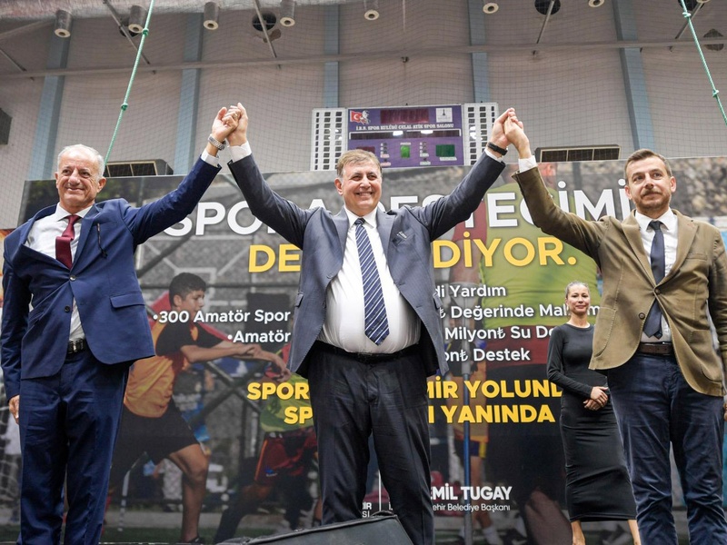 Başkan Tugay, “Burada oluşturduğunuz muhteşem tabloya tanıklık etmek benim için büyük bir onur. Bu güzel ortamın sihrini, hepinizin yüreğinde, aklında taşımasını istiyorum. 2025’in sonunda İzmir’de sporu hep birlikte büyütmenin keyfini yaşayalım. Bu güzel çocuklarla, bu güzel gençlerle, kulüplerimizle İzmir’i sporun şehri yapalım. Aramızda şampiyon kardeşlerimiz var. Nice şampiyonları hep birlikte yetiştirelim. İzmir’e yakışan budur. İzmir’e yakışan Türkiye şampiyonları, Avrupa şampiyonları, dünya şampiyonları ve olimpiyat şampiyonları yetiştirmektir. Gerçekten sporcuya duyduğumuz sevgi çok farklı. Spor yapmak isteyen gençlerimize duyduğumuz sevgi çok samimi, çok içten. Bunun gereğini yerine getireceğiz. Bu sene yaptığımız yardım geçen yılın iki buçuk katı. Önümüzdeki yıl inşallah bu senekinin iki katı, üç katı olacak” diye konuştu.