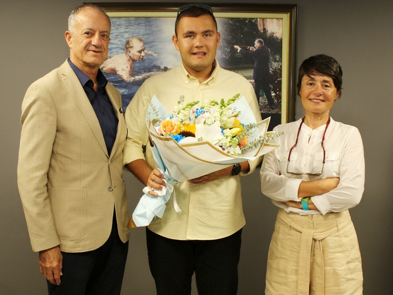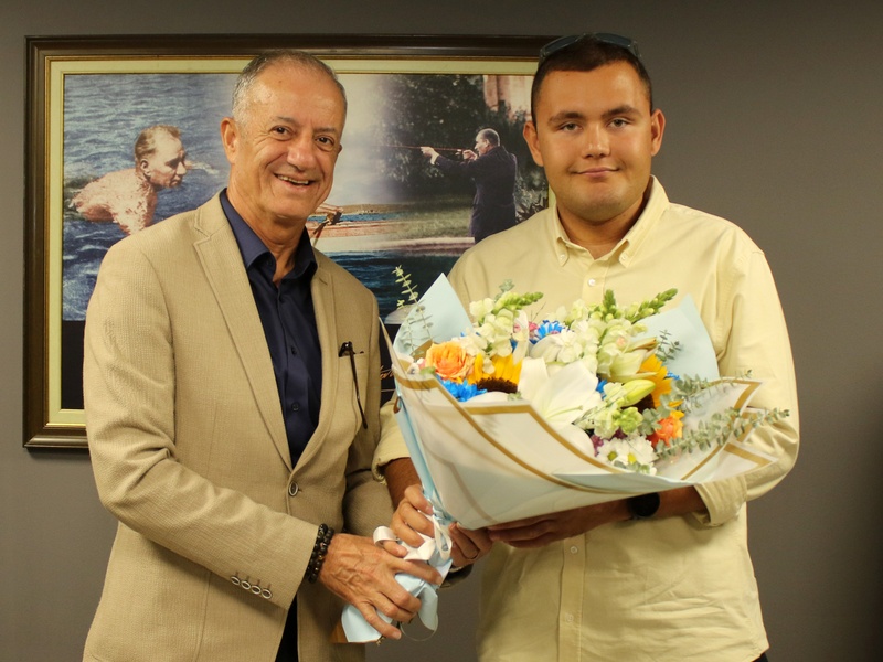 İzmir Büyükşehir Belediyesi Spor Kulübü’nün başarılı ultra maraton yüzücüsü Tuna Tunca, Kulüp Başkanımız Ertuğrul Tugay'ı makamında ziyaret etti. Eylül ayında Manş Denizi’ni (İngiltere ile Fransa arasındaki boğaz) geçme denemesi yapan Tuna Tunca, 8 saat boyunca denizde kaldıktan sonra olumsuz hava koşulları nedeniyle parkuru tamamlayamamıştı. Kulüp Başkanımız Ertuğrul Tugay, Tuna'ya olan desteklerinin devam edeceğini belirterek, “Tuna'nın başarıları bizim için çok önemli. 2025 yılının Haziran ayında yeniden Manş Denizi'ni geçmek için hazırlıklara başlayacak. Bu hedefi başaracağından eminiz” dedi.