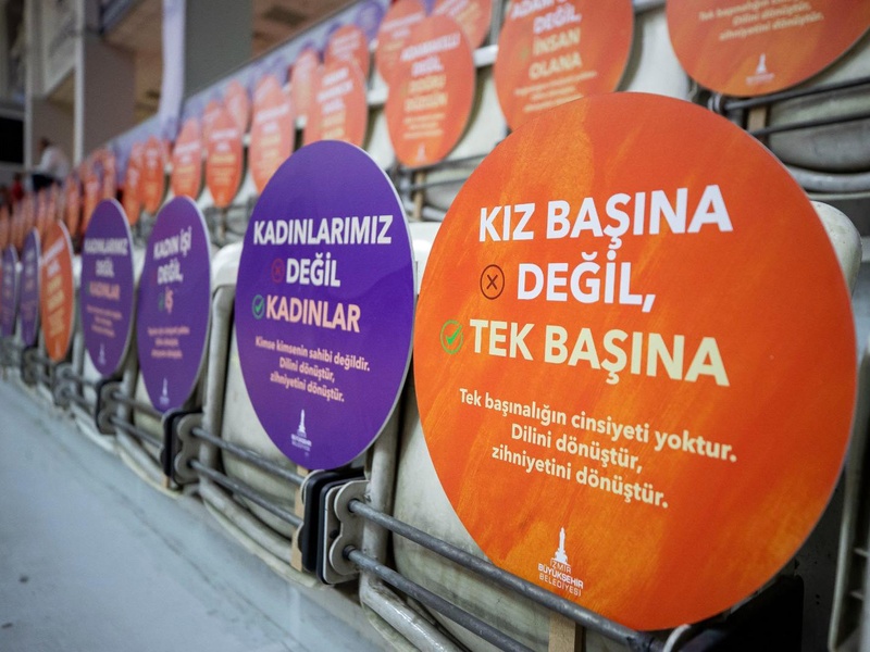 Dövizlerde, “Sözünün eri değil, sözünü tutan”, “Kız başına değil, tek başına”, “Adamakıllı değil, doğru düzgün”, “Adam olana değil, insan olana”, “Kadın mühendis değil, mühendis”, “Kadınlarımız değil, kadınlar”, “Adam etmek değil, düzeltmek”, “İş adamı değil, iş insanı”, “Bayan değil, kadın”, “Hanım hanımcık değil, sessiz sakin”, “Erkekliğe sığmayan değil, insanlığa sığmayan” mesajları yer aldı.