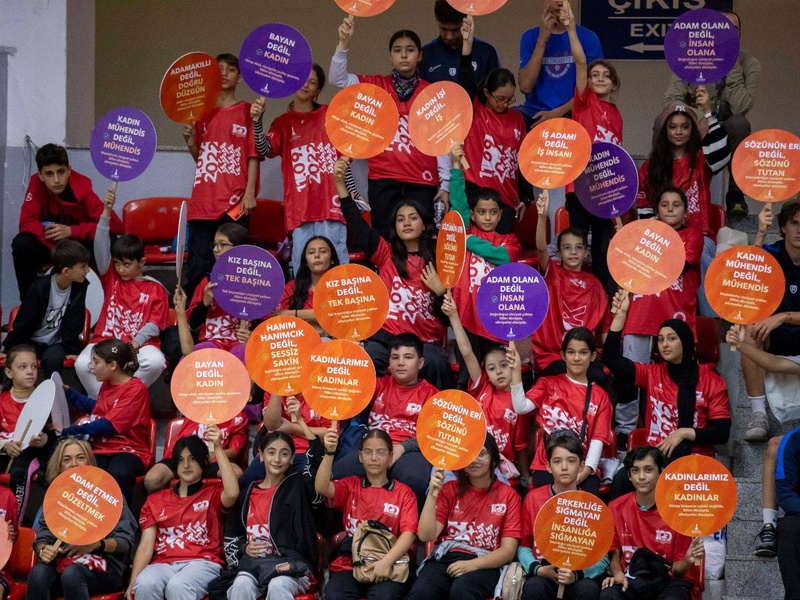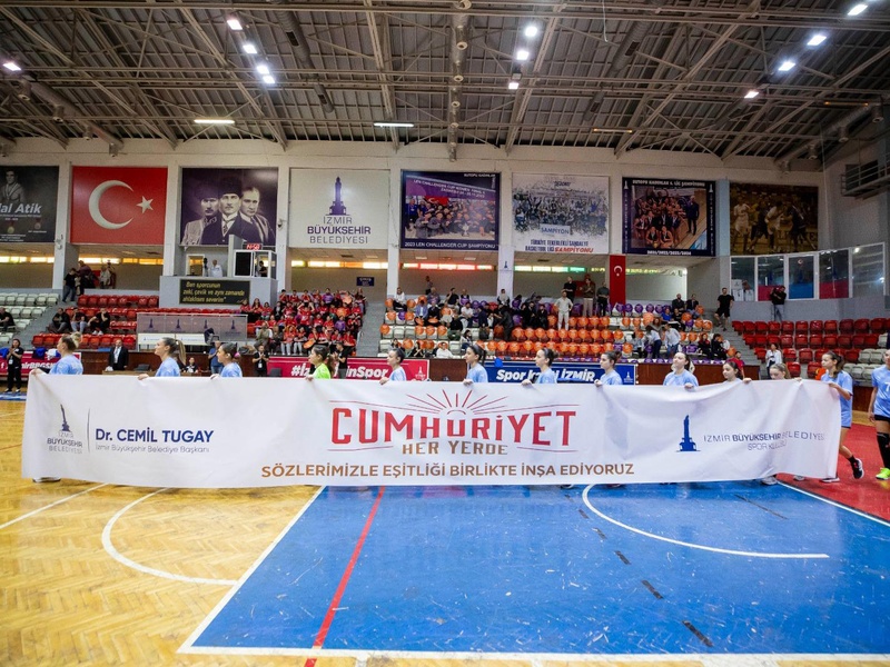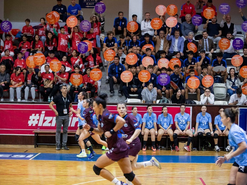 Türkiye Kadınlar Hentbol Süper Ligi’nde mücadele eden İzmir Büyükşehir Belediyesi Spor Kulübü’nün Trabzon Ortahisar ile karşı karşıya geldiği mücadeleye toplumsal cinsiyet eşitliği mesajları damga vurdu. Kültürpark Celal Atik Spor Salonu’ndaki müsabakada tribünleri dolduran sporseverler Türkiye’de son dönemde yaşanan kadın cinayetlerine dikkat çekti. İzmir ekibi sahaya, “Cumhuriyet Her Yerde/Sözlerimizle Eşitliği İnşa Ediyoruz” yazılı pankartla çıktı. Seyirciler ise kadın erkek eşitliğine vurgu yapan dövizlerle mesaj verdi. Müsabaka 30-30 eşitlikle sonuçlanırken kadınların, erkeklerin ve toplumun tüm kesimlerinin potansiyellerini gerçekleştirebileceği bir ortam yaratmak için birlikte olunması yönünde çağrı yapıldı.