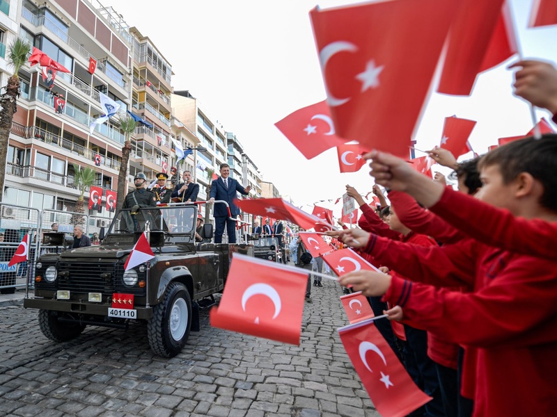 İzmir, 29 Ekim Cumhuriyet Bayramı’nı tüm gün büyük bir katılımla kutladı. Sabahın ilk saatlerinden itibaren 101. yıl heyecanı tüm kenti sardı. 7’den 70’e İzmirli yurttaşlar kutlamalarda bir araya geldi. 29 Ekim Cumhuriyet Bayramı kutlamalarının ilk adresi İzmir Hükümet Konağı oldu. İzmir Valisi Dr. Süleyman Elban, İzmir Büyükşehir Belediye Başkanı Dr. Cemil Tugay ve Ege Ordusu ve Garnizon Komutanı Orgeneral İrfan Özsert, kamu, siyaset, oda ve sivil toplum kuruluşu temsilcilerinin tebriklerini kabul etti.