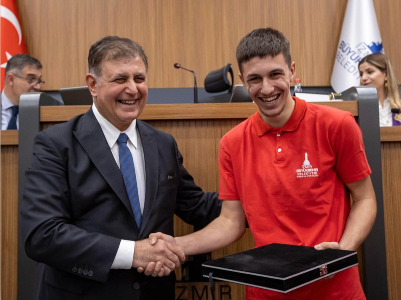 İzmir Büyükşehir Belediyesi’nin Kasım ayı olağan meclis toplantısının beşinci oturumu İzmir Büyükşehir Belediye Başkanı Dr. Cemil Tugay idaresinde Kültürpark Fuar Alanı 4 No’lu Hol’de gerçekleşti. 9-10 Kasım 2023 tarihleri arasında İsveç’te düzenlenen Avrupa Açık Taekwondo Turnuvası ‘73 Kilogram Erkekler Kategorisi’nde üçüncü, 30-31 Mart 2024 tarihleri arasında Skopje Makedonya Avrupa Açık Taekwondo Turnuvası ‘78 Kilogram Genç Erkekler Kategorisi’nde Avrupa Şampiyonu, 23-31 Ekim 2024 tarihleri arasında Bahreyn’in Manama şehrinde düzenlenen Dünya Okul Sporlar Yaz Oyunları ‘73 Kilogram Erkekler Kategorisi’nde Dünya Şampiyonu olan İzmir Büyükşehir Belediyesi Spor Kulübü Lisanslı sporcusu Mahir Miran Kılınç’a 1 adet Ata Altın karşılığı olan Türk Lirası’nın ödül olarak verilmesi kabul edildi. Meclise katılan Kılınç’ı tebrik eden Başkan Tugay, başarılarının devam etmesini diledi.