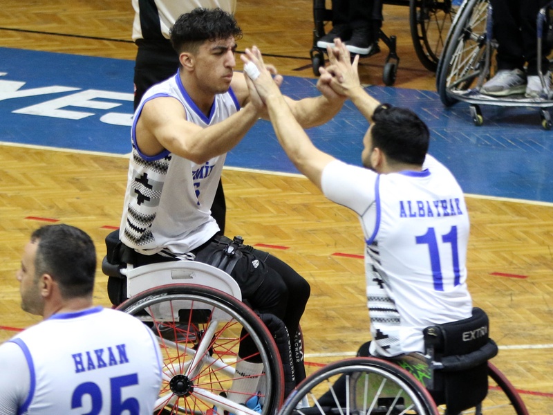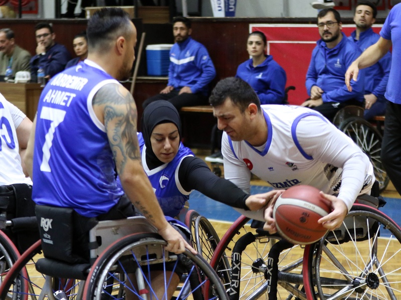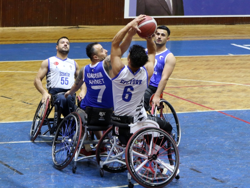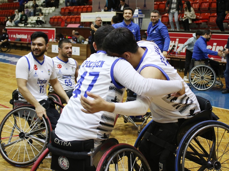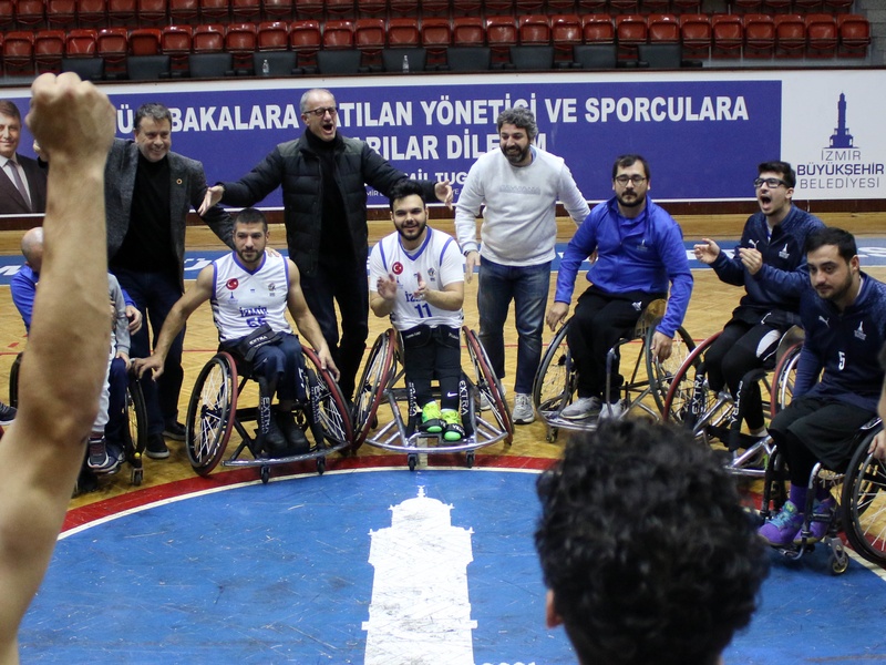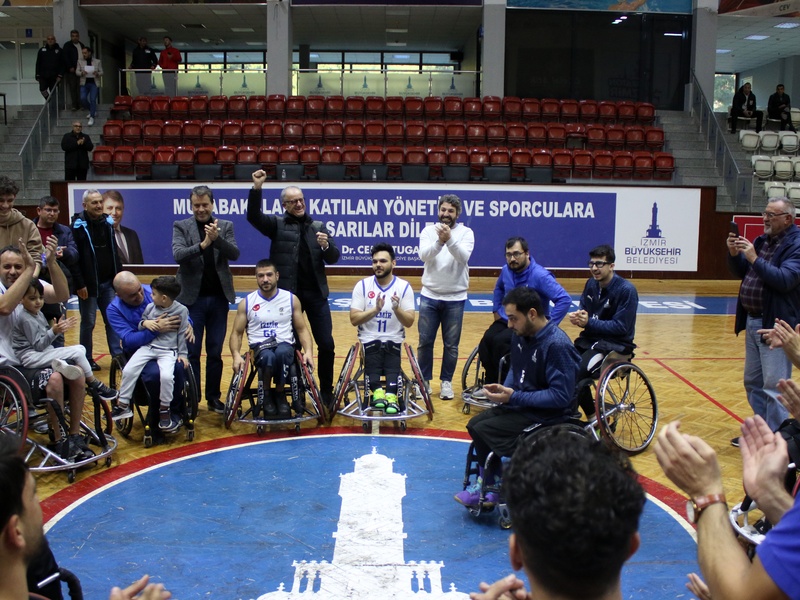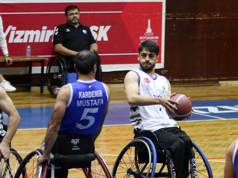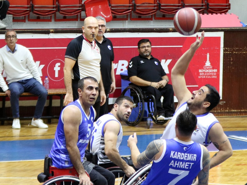 İzmir Büyükşehir Belediyesi Spor Kulübü Tekerlekli Sandalye Basketbol Takımımız, dördüncü hafta maçında evinde Karabük Demir Kartal'ı 60-58'lik skorla mağlup etti. Celal Atik Spor Salonu'nda oynanan karşılaşmanın ilk çeyreğini 21-15 geride tamamlayan ekibimiz, devre arasına 34-31 mağlup girdi. Üçüncü çeyreği 50-45 geride kapatan takımımız, son çeyrekte yaptığı savunma ile salondan 2 sayı farkla 60-58'lik skorla galip ayrıldı. Karşılaşmayı Kulüp başkanımız Ertuğrul Tugay ve Yönetim Kurulu Üyemiz Uğur Yelekli takip etti.